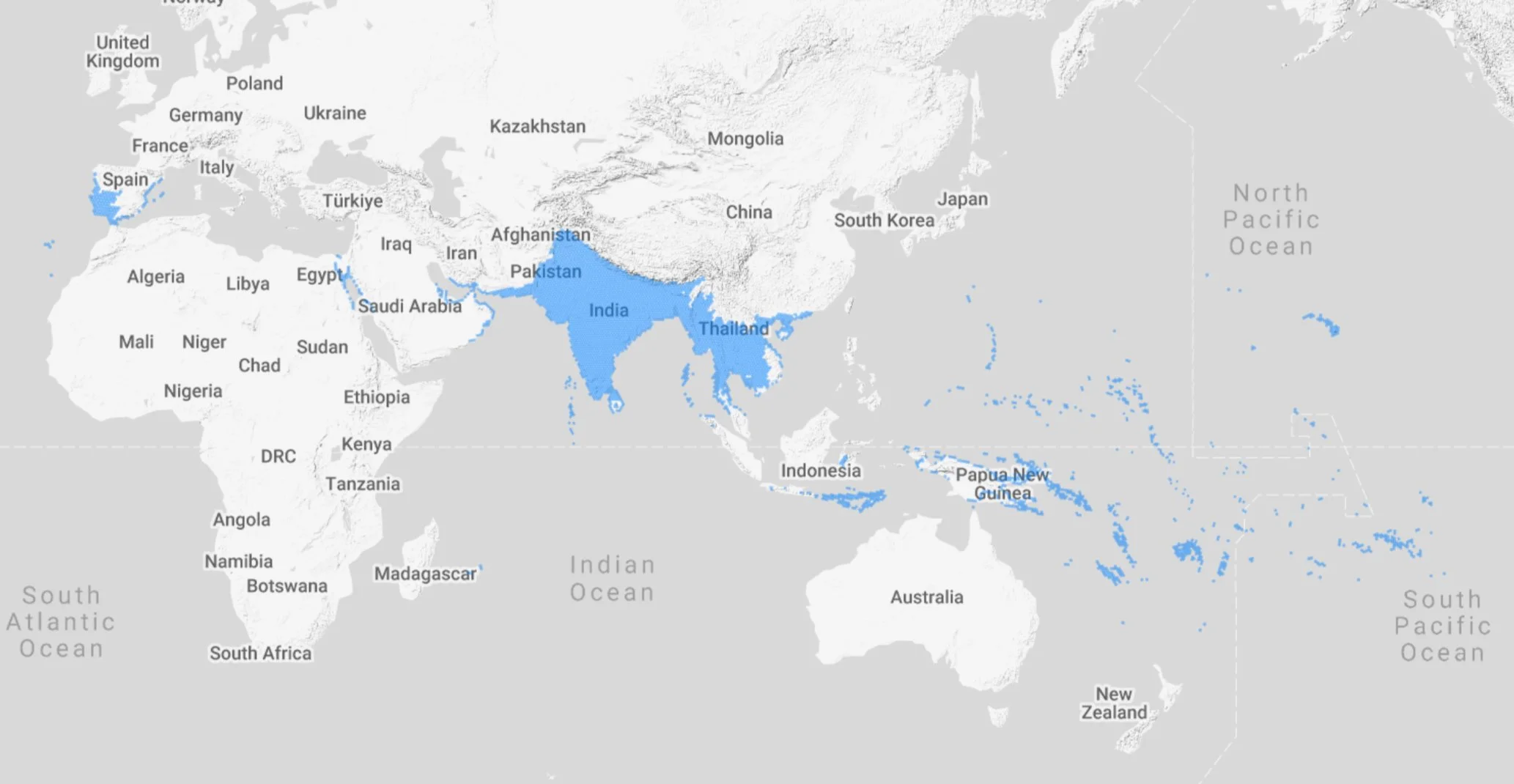 📍 Native to South Asia and parts of Southeast Asia, although it has been introduced to several other countries.